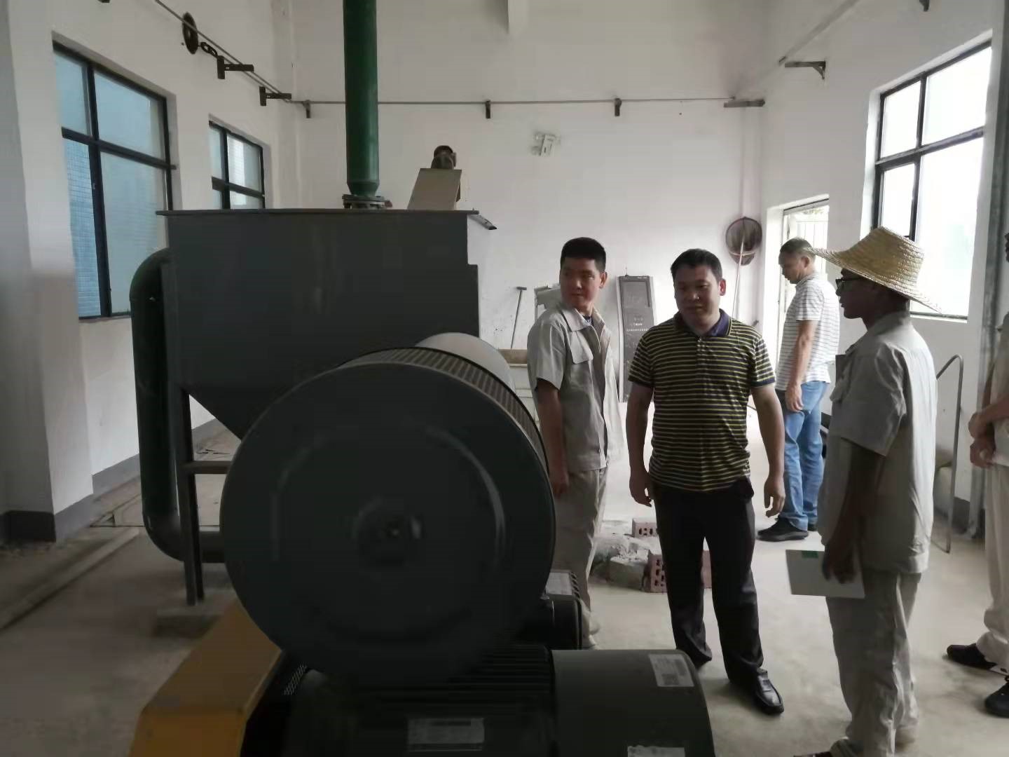 專家組檢查預(yù)處理羅茨風(fēng)機(jī)房