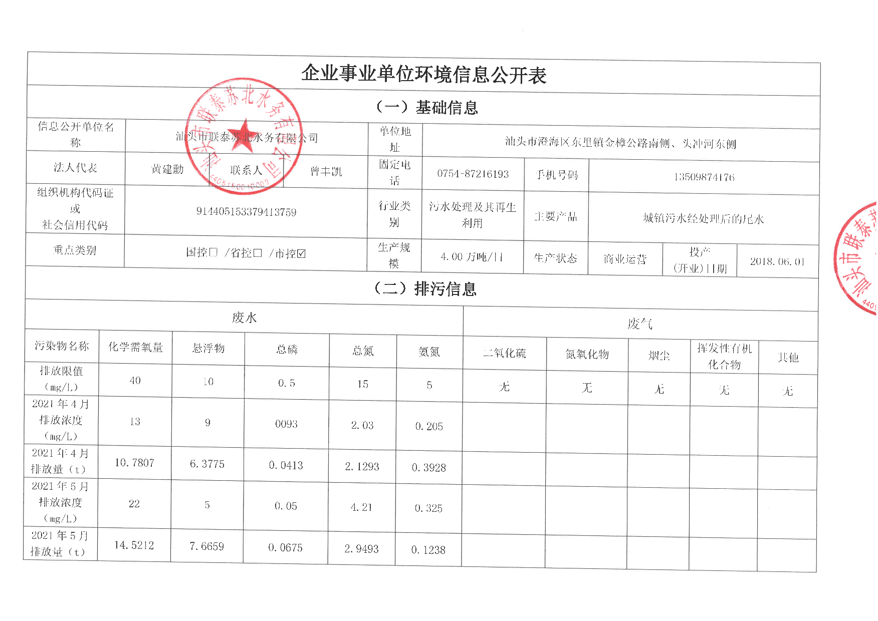 企事業(yè)單位環(huán)境信息公開表
