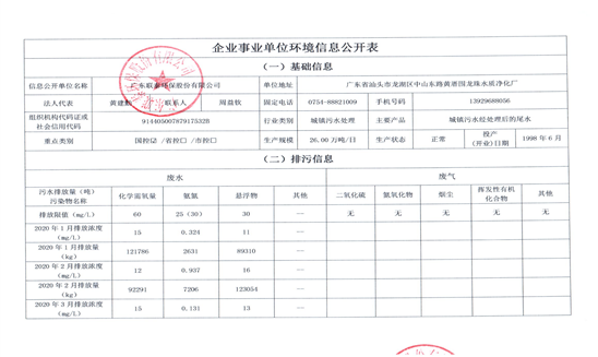 信息公開單位名稱: 廣東聯(lián)泰環(huán)保股份有限公司