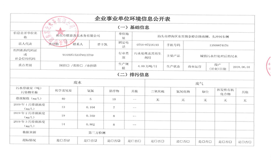 信息公開單位名稱: 廣東聯(lián)泰環(huán)保股份有限公司(汕頭新溪污水處理廠)