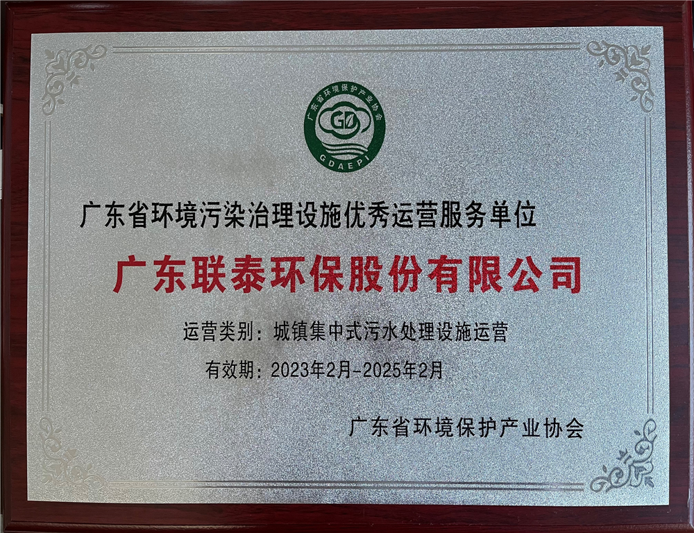 廣東省環(huán)境污染治理設(shè)施優(yōu)秀運(yùn)營服務(wù)單位(有效期2023年2月-2025年2月)